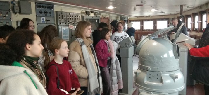 Школьники побывают в кают- компании, заглянут в каюту капитана и поднимутся на капитанский мостик - туда, где принимались решения, от которых зависела судьба корабля и людей.